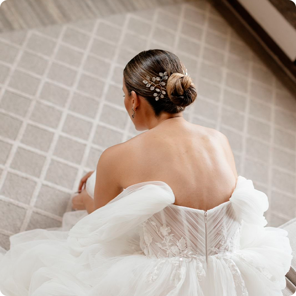Nuestros tocados están diseñados para resaltar tu individualidad y agregar un toque de magia a tu look nupcial.